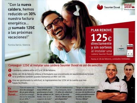 Si estabais pensando en cambiar vuestra caldera, ahora es el momento, SAUNIER DUVAL, os ayuda , si instalais la caldera antes del 1 de Noviembre, os ingresan en vuestra cuenta 100 EUROS, sin sorteos, eso si hasta fin de [...]